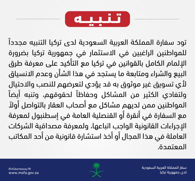 سفارة المملكة في تركيا تحذر المواطنين من النصب والاحتيال صحيفة تواصل الالكترونية